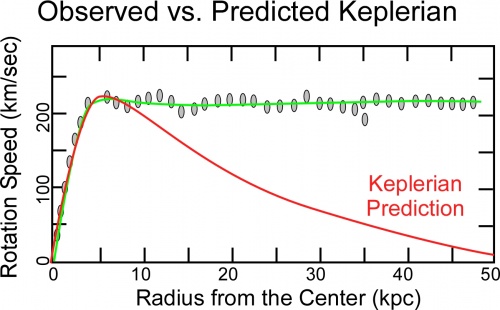 [[Image:Robert-de-Hilster-Dark-Matter-vs-G-2018-BobdeHilster01-blue-curve-OSU.jpg|thumbnail| | [[Image:Robert-de-Hilster-Dark-Matter-vs-G-2018-BobdeHilster01-blue-curve-OSU.jpg|thumbnail|500px|<caption>Velocity of the Stars - Ohio State \cite{blue-curve-OSU}</caption>]] | ||